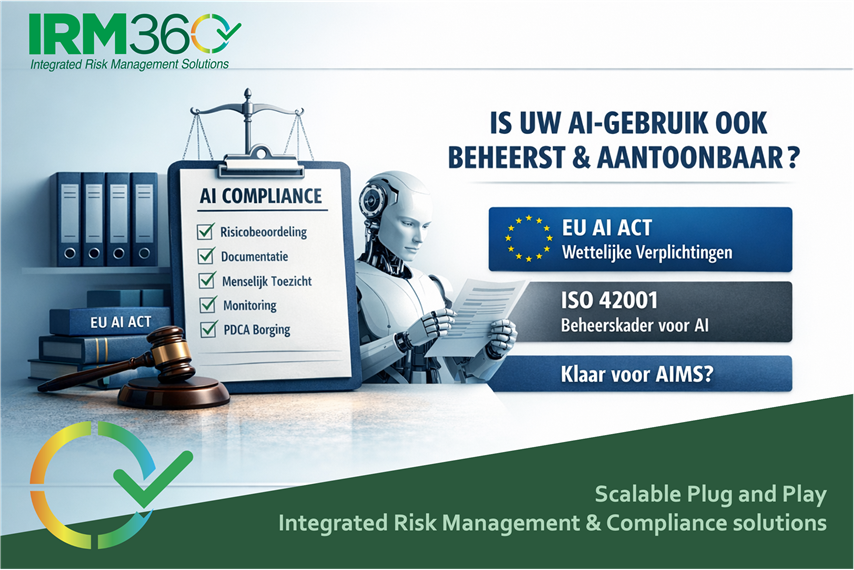 Binnen IRM360 hebben wij dit uitgewerkt in ons AI Management System (AIMS), volledig afgestemd op ISO 42001 en ondersteunend aan EU AI Act-compliance.